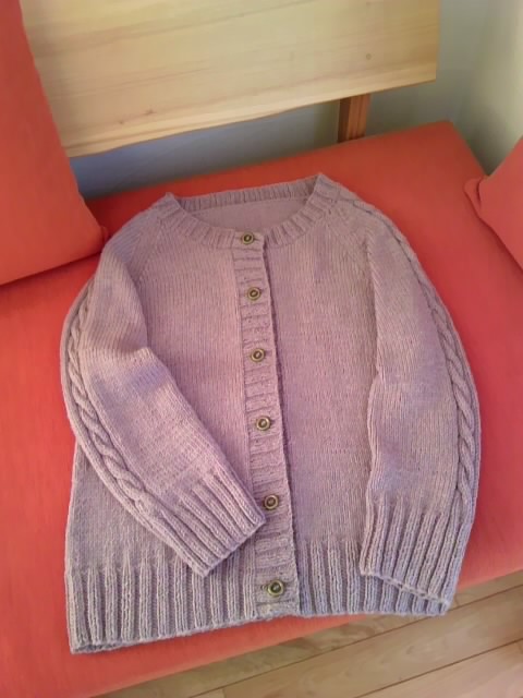 カーディガン完成 Category:ニット Date:2016年12月13日 乾くのに1日かかってしまった。でもふわふわに イメージ通りにごく普通のカーディガンができた。 糸 プララナバルファDK チャコール 9玉使用 7号針 PR