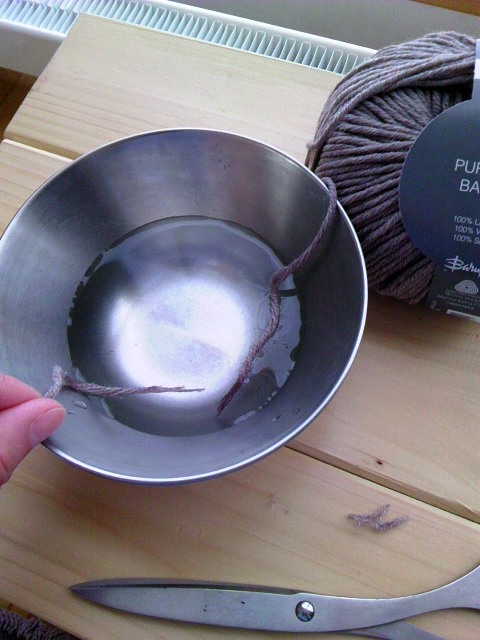 結ばない毛糸のつなぎ方 Category:ニット Date:2016年11月11日 少し前の「すてきにハンドメイド」で紹介されていた、結ばない毛糸のつなぎ方をやってみようと思います。 今回の編みかけは、風工房さんデザインのカーディガンです。(図書館でコピーを取ったのでタイトルは分からず。マリンテイストの春夏の本でした。うーんざっくり…) やや飽き気味になる袖を一気編みしていたところ、片方の毛糸がなくなりそうです。 糸端を両方ともやや斜めにカットして水に浸し、十分水を含ませます。 べちょべちょになってます。3~4㎝くらい重なるようにして合わせます。 そして、両手で二本をぐりぐりとこすり合わせます。結構激しくやらないと、ぺら~とはがれてしまいます。(その肝心のところが写せなかった!手が三本あれば…!) フェルト化させることでつなげようってことですね。 なのでウール100%でないとつながらないかと思われます。 乾燥させて出来上がり。 マーカーの上の1~2目がつないだところです。 ややぽこっとしていますが、心配していたぼそぼそ感は無いです。 思っていたより目立たない。 今回の糸がイタリア糸のプララナバルファDKでしたので、こ~んなふわもちな糸でこんな雑なことしていいのか?と不安でした。 でもそこは高級糸(*自分比)の底力。 フェルト化してもふわもちでした PR