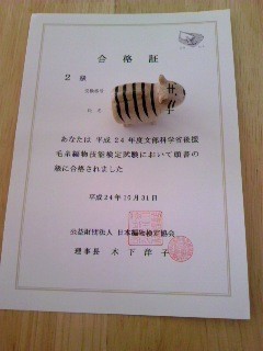 あみ検の結果がきましたよ Category:日常 Date:2012年11月05日 10月末までに結果がくるものと思っていたのであせりましたが(正しくは10月31日発送でした) 編み物検定2級合格しておりました ああ良かった・・・ あきらかに間違いを犯していたところがペーパーと製図と実技にあったので・・・全部かい 検定料が無駄になったらこ~かいするぅ~と思っていたのでホッ だって7000えんだもの。ちょっと高いよねぇ。(主婦感覚) 来年は1級受けるのかなぁわたし。 今は考えられないです。今度は検定料9000えんだし・・・(またそこかい) 今年の1級は難しかったとどこかのブログで読みましたが、たしかに時間ギリギリまで 手を動かしていたものな。 刺繍もあったとか。 おそろし・・・。 ゴム編み止めも出題範囲だし・・・アレ暗記するのってどうよ~? さて。 すっかり秋めいてきたので、はじめてミトンを編んでみました。 北海道で言うところの「ぼっこ手袋」です。 北欧チックな?模様編み。 片方できた!! が、な~んかあやしい頂点のとじ。 メリヤスとじをせよと書いてあったけど???こんがらがっち。 しかも小さいので、子供用だなぁ。 だけど手編みってうちの子あんまり喜ばないのよねぇ PR