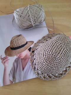 ペーパーヤーンで中折れ帽 Category:ニット Date:2017年06月21日 リネンの糸が届くまでに毛糸ピエロのアミアンで帽子を編もうと。 色の名前はビスケットだったはずが、イメージとちょっと違うかな。(ピクルスかと思った…) エコアンダリヤの編み図で、かぎ針6号でだいたい同じ大きさになりました。 *写真はイメージです。(エコアンダリヤで編む定番の帽子とおしゃれバッグより~) この時点で写真のようになるのか不安でした…。 編んでほどいて3回くらい微調整しました。 1段増やしたり減らしたり難しいことはしていませんが。 そして、無理やり中折れにして完成! ハリウッドザコシショウと子供に言われて その辺に合ったネイビーのリボンを結んでみました。 黒より軽い印象になると思います。(ザコシショウ感も薄まる) 後ろに写っている麻ひもとの色の違いをご覧くださいませ。 麦わら色ではないですねぇ。 PR